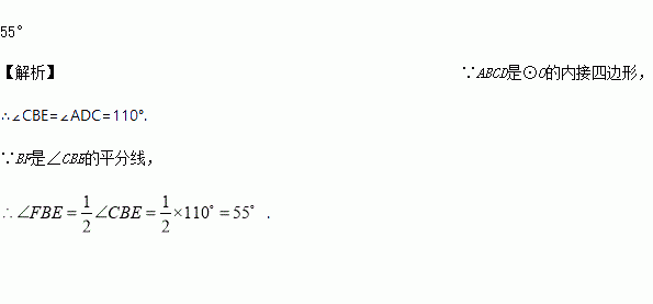 如图,ABCD是⊙O的内接四边形,点E在AB的延长线上,BF是∠CBE的平分线,∠ADC=110°,则∠FBE=________________.