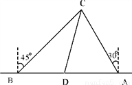 海里,在B处测得C在北偏东45º的方向上,A处测得C在北偏西30º的方向上,在海岸线AB上有一灯塔D,测得AD=120