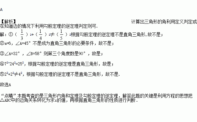 ,∠A=45°;③∠A=32°, ∠B=58°④