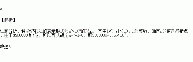 我国南海海域面积为3 500 000km2,用科学记数法表示正确的是( )