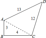 分析 连接AC,首先由勾股定理求出AC,再由勾股定理的逆定理证出△ACD是直角三角形,∠ACD=90°,四边形ABCD的面积=△ABC的面积+△ACD的面积,即可得出结果.