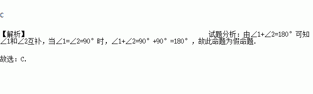 对于命题“如果∠1+∠2=180°,那么∠1≠∠2”,能说明它是假命题的反例是( )