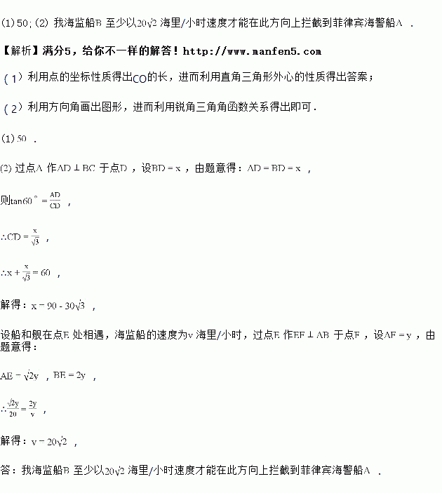 方向运动进行拦截,问我海监船至少以多少速度才能在此方向上拦截到菲律宾海警船![]()