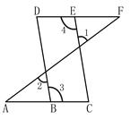 如图,点E在直线DF上,点B在直线AC上,若∠1=∠2,∠3=∠4,则∠A=∠F,请说明理由.