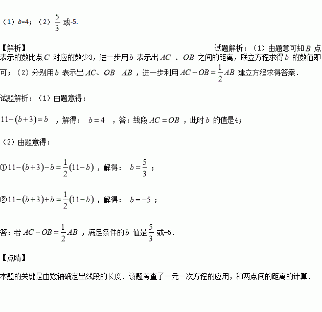 已知数轴上,点O为原点,点A对应的数为11,点B对应的数为b,点C在点B右侧,长度为3个单位的线段BC在数轴上移动.
