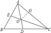 分析:(1)根据三角形的内角和定理,得出∠DAC+∠ECA=60°,在△OAC中,即可求出∠AOC=120°,根据对顶角相等即可求出∠DOE的度数,作辅助线在AC上截取AG=AE,可证出△AEO≌△AGO(SAS),即可得出∠AOE=∠AOG,EO=GO,再证出△DCO≌△GCO,即可得出OE=OD.