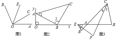 解:(1)如图1,∵OE是∠COB的平分线(已知),