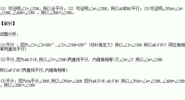 如图,∠1+∠2=180°,∠DAE=∠BCF,DA平分∠BDF.