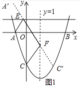 (2)如图2中,作点A关于直线y=1的对称点A′,点C关于抛物线对称轴的对称点C′,连接A′C′与直线y=1交于点E,与对称轴交于点F,此时四边形ACEF的周长最短.![]()