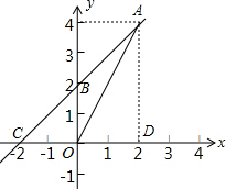 解答 解:(1)∵由图可知A(2,4)、B(0,2),