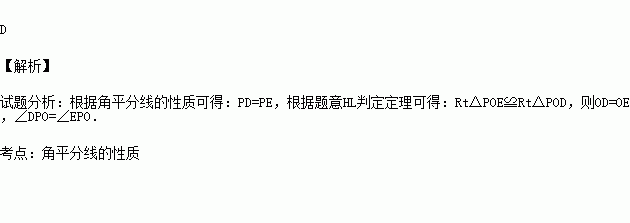 A、PD=PE B、OD=OE C、∠DPO=∠EPO D、PD=OP