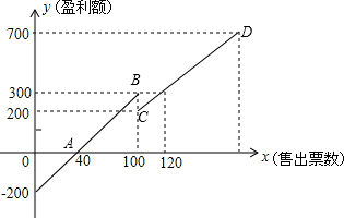 (3)当买的票数少于40时,贏利额取负值;