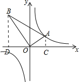 分析 要求函数的解析式只要求出B点的坐标就可以,过点A,B作AC⊥x轴,BD⊥x轴,分别于C,D.根据条件得到△ACO∽△ODB,得到:$\frac{BD}{OC}$=$\frac{OD}{AC}$=$\frac{OB}{OA}$=2,然后用待定系数法即可.