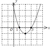 故抛物线与x轴的交点为:(1,0),(3,0),顶点坐标为(2,-1),