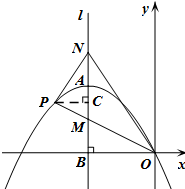 综上,点P在对称轴l左侧的二次函数图象上运动时,△OPN能为直角三角形,当m=4+4$\sqrt{2}$,即P($-4-4\sqrt{2},-4$)时,N为第四象限的点成立.