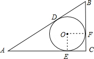 ∵⊙O与Rt△ABC的三边分别点D、E、F,