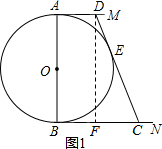 分析 (1)根据切线长定理得到BF=AD=x,CE=CB=y,则DC=DE+CE=x+y,在直角△DFC中根据勾股定理,就可以求出y与x的关系,