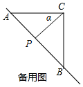 ③如图所示,当CA=CB时,△BCP是等腰直角三角形,此时点P与点A重合,∠ACP=α=0°;![]()