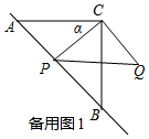 ②根据垂线段最短可得,当CP⊥AB时,CP最短,此时,等腰Rt△PCQ的面积最小,求得α=45°;