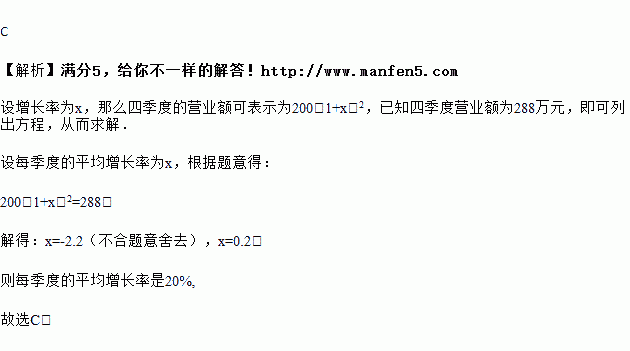 万元.如果每季度营业额的平均增长率相同,那么每季度的平均增长率是( )![]()