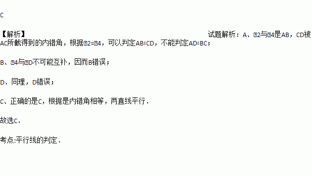 B. ∵∠4+∠D=180°,∴AD∥BC