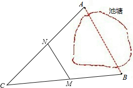 解答:解:如图,在AB外选一点C,连接AC和BC,并分别找出AC和BC的中点M、N,如果测得MN=20m,那么AB=2×20m=40m.