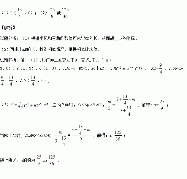 m,问:是否存在这样的m,使得△APQ与△BDA相似?如存在,请求出m的值;若不存在,请说明理由.