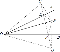 分析 (1)作点P关于OA的对称点为C,关于OB的对称点为D,连接CD,分别交OA、OB于点E、F,此时△PEF的周长为PE+EF+FP=CD,周长最小.
