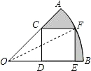 ∴S阴影=S扇形OAB-S△OCD-S正方形CDEF=$\frac{45π•10}{360}$-$\frac{1}{2}×\sqrt{2}×\sqrt{2}$-$\sqrt{2}×\sqrt{2}$=$\frac{5π}{4}$-3,