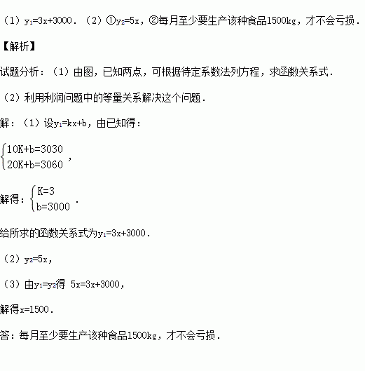 ②假设该公司每月生产的该种食品均能全部售出,那么该公司每月至少要生产该种食品多少kg,才不会亏损?