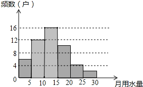 (4)根据月均用水量不少于20t的家庭数占抽取的家庭总数的百分比,乘上小区家庭总数,求得该小区月均用水量不少于20t的家庭数.