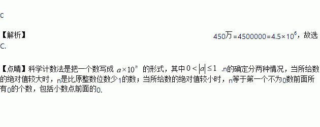A. 450×104 B. 45.0 ×105 C. 4.50 ×106 D. 4.50 ×107