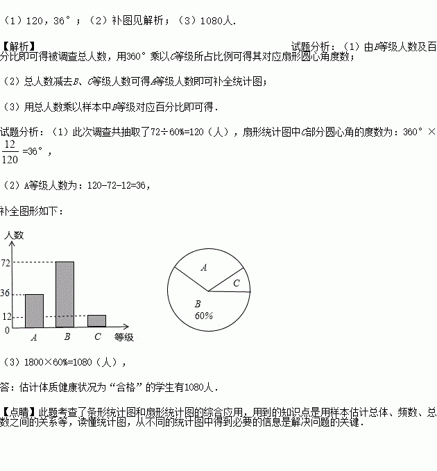 (3)若该校共有1800名学生,请估计体质健康状况为“合格”的学生有多少人?