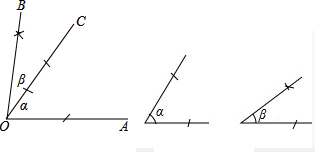 已知∠α、∠β,如图,画∠AOB=∠α+∠β.