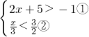 由不等式①移项合并得:2x>-6,