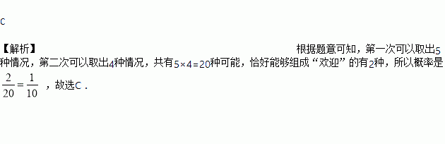 袋中放有一套(五枚)北京2008年奥运会吉祥物福娃纪念币,依次取出(不放回)两枚纪念币,恰好能够组成“欢迎”的概率是 ( )