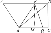 过P作PM⊥BC于M,由图可知:CM=PD=2t,CQ=t,