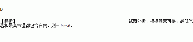 2015年2月1日宿迁市最高气温是8℃,最低气温是-2℃,则当天宿迁市气温变化范围t(℃)是( )