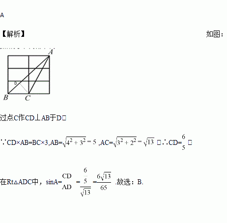 如图是一个3×2的长方形网格,组成网格的小长方形长为宽的2倍,△ABC的顶点都是网格中的格点,则sin∠BAC的值( )