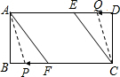 (2)由作图可以知道,P点AF上时,Q点CD上,此时A,C,P,Q四点不可能构成平行四边形,