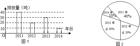 ·ÖÎö £¨1£©¸ù¾Ý2012ÄêµÄÅÅ·ÅÁ¿¼°ËùÕ¼±ÈÀý£¬¿ÉÇó³ö¸Ã³§2011-2014Äê¶þÑõ»¯ÁòÅÅ·Å×ÜÁ¿£»¼Ì¶øÇó³ö2011ÄêËùÕ¼µÄ±ÈÀý¼°ÔÚÉÈÐÎͳ¼ÆÍ¼ÖÐËùÕ¼µÄÔ²ÐĽǵĶÈÊý£¬2014Äê¶þÑõ»¯ÁòµÄÅÅ·ÅÁ¿Õ¼ÕâËÄÄêÅÅ·Å×ÜÁ¿µÄ°Ù·Ö±È£»½ø¶ø²¹È«Í³¼ÆÍ¼¼´¿É£®