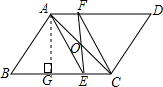 ②过点A作AG⊥BC,垂足为G,在等边三角形ABE中,由等边三角形的性质可求EG的值,然后由勾股定理可求AG的值,然后根据平行四边形的面积公式即可计算四边形AECF的面积.