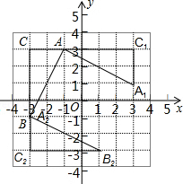 解答 解:(1)如图所示:旋转中心的坐标是:(0,0),旋转角是:90°,故答案为:(0,0),90;(2)如图所示:△A2B2C2即为所求.