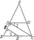 分析:根据垂直的定义得到∠BFE=∠BDC=90°,根据平行线的判定方法得到EF∥CD,则∠1=∠BCD,由于∠1=∠2,则∠2=∠BCD,于是可根据平行线的判定方法得到DG∥BC,然后根据平行线的性质即可得到∠AGD=∠ACB.