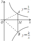 ∴S△AOM=$\frac{1}{2}$×3=$\frac{3}{2}$,S△BOM=$\frac{1}{2}$|k|,