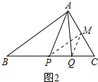 (2)如图2,当AP≠AC时,猜想并验证∠BAP和∠PAQ的数量关系.