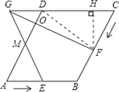 如图,菱形ABCD的边长为6cm,∠DAB=60°,点M是边AD上的点,且DM=2cm,点E、F分别从A、C同时出发,以1cm/s的速度分别沿AC、CB向B运动,EM,CD的延长线相交于G,GF交AD于O,设运动时间为x(s),△CGF的面积为y(cm2