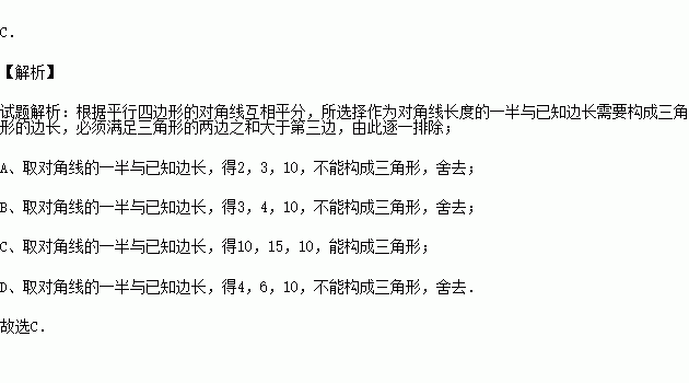 平行四边形的一边长为10cm,那么这个平行四边形的两条对角线长可以是( )