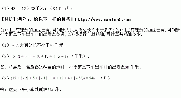 出租车司机小李某天下午的营运全是在东西走向的人民大街上进行的.如果规定向东为正,向西为负,他这天下午行车里程(单位:千米)如下:,![]()