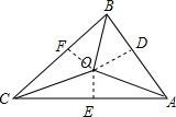 过点O,作OD⊥AB于D,作OE⊥AC于E,作OF⊥BC于F,![]()
